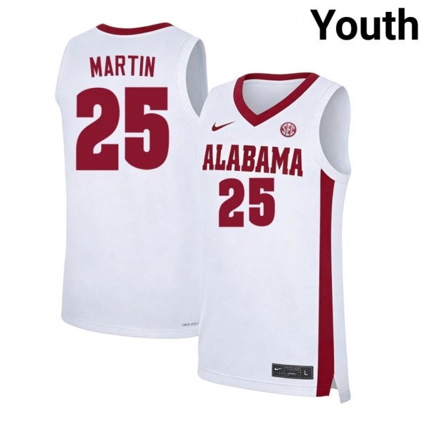 #25 Jacob Martin Alabama Crimson Tide White Youth Jerseys Limited College Basketball 557273-912