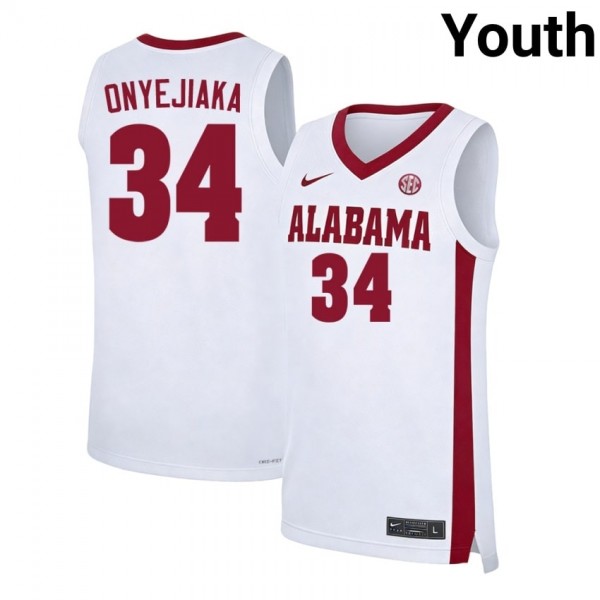 #34 Collins Onyejiaka Roll Tide White Youth Jersey 2025-26 College Basketball 611281-772