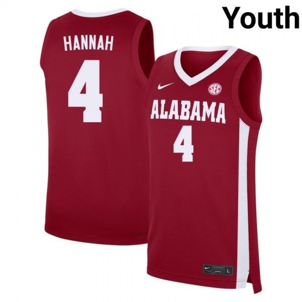 #4 Davion Hannah Alabama Crimson Tide Crimson Youth Jerseys Replica College Basketball 674180-539