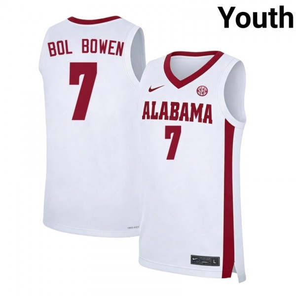 #7 Taylor Bol Bowen Roll Tide White Youth Jersey 2025-26 College Basketball 897203-797